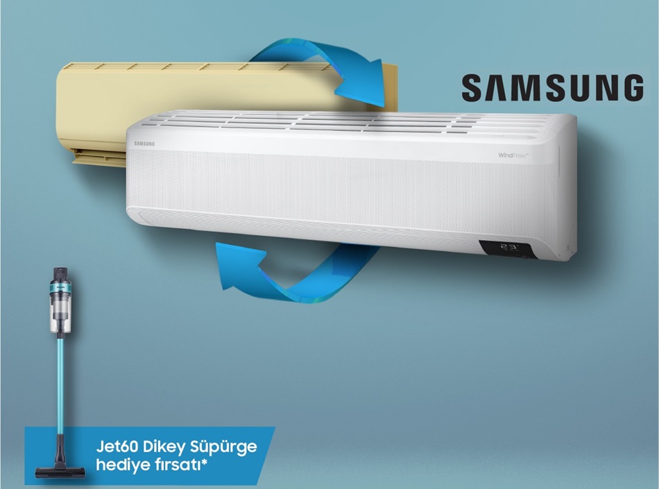 Samsung Electronics, yeni yıl heyecanını avantajlı bir kampanya ile taçlandırarak evinin havasını değiştirmek ve enerji verimliliği yüksek çözümlerle konforu artırmak isteyenlere geri çevrilemeyecek bir fırsat sunuyor. Kampanya kapsamında markası ne olursa olsun eski klimasını verip kampanya kapsamındaki Samsung klimalardan alanlara Jet60 Dikey Süpürge hediye fırsatı sunuluyor. Türkiye’deki tüm Samsung satış noktalarından ve samsung.com.tr online mağazasından yapılan alımlarda geçerli olan kampanya, 31 Ocak tarihine dek sürecek.