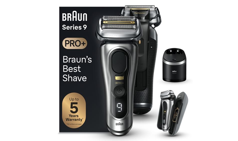 Braun Series 9 Pro+, Braun Series 9 Pro+ özelliği ile sakal yoğunluğuna göre bıçak darbelerinin hızını ayarlayarak kusursuz bir tıraş deneyimi sunarken cerrahi sınıf çelikle geliştirilmiş keskin bıçakları ise her geçişte cildinizde oluşabilecek hasarı en aza indiriyor. Series 9 Pro + kutu içeriğinde yer alan 6’sı 1 arada SmartCare merkezi tıraş makinenizin bakım programını otomatik olarak seçiyor, hijyenik bir şekilde temizliyor, bıçağın kullanım ömrünü koruyor, bıçak performansını optimize ediyor, makinenizi hızla kurutuyor ve şarj ediyor. Tıraş makinenizi dilediğiniz zaman yanınızda taşımanıza yardımcı olacak PowerCase ise hem ergonomik tasarımı ile yerden tasarruf etmenize hem de dahili bataryası sayesinde %50 ekstra şarj süresi vererek nerede olursanız olun tıraş makinenizi şarj edebilmenize yardımcı oluyor. Sağladığı %100 su geçirmezlik ile ıslak ve kuru kullanımı bir arada sağlayabilen Series 9 Pro +, 90 dakikaya kadar çalışma kapasitesi ve 5 yıl garanti seçeneği ile size uzun yıllar eşlik edecek!
