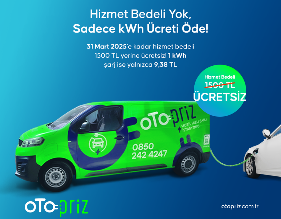 Elektrikli araç kullanıcılarının hayatını kolaylaştıran OtoPriz, Mobil Hızlı Şarj İstasyonu’ndan faydalanmak isteyenlere yönelik yeni kampanyasını da duyurdu. 31 Mart 2025 tarihine kadar devam edecek uygulama sayesinde hizmet bedeli ödemeksizin mobil şarj randevusu alınabilecek. OtoPriz kullanıcıları, 0850 242 42 47 numaralı çağrı merkezini arayarak ihtiyaç duydukları konuma mobil şarj hizmeti talebinde bulunabiliyor.